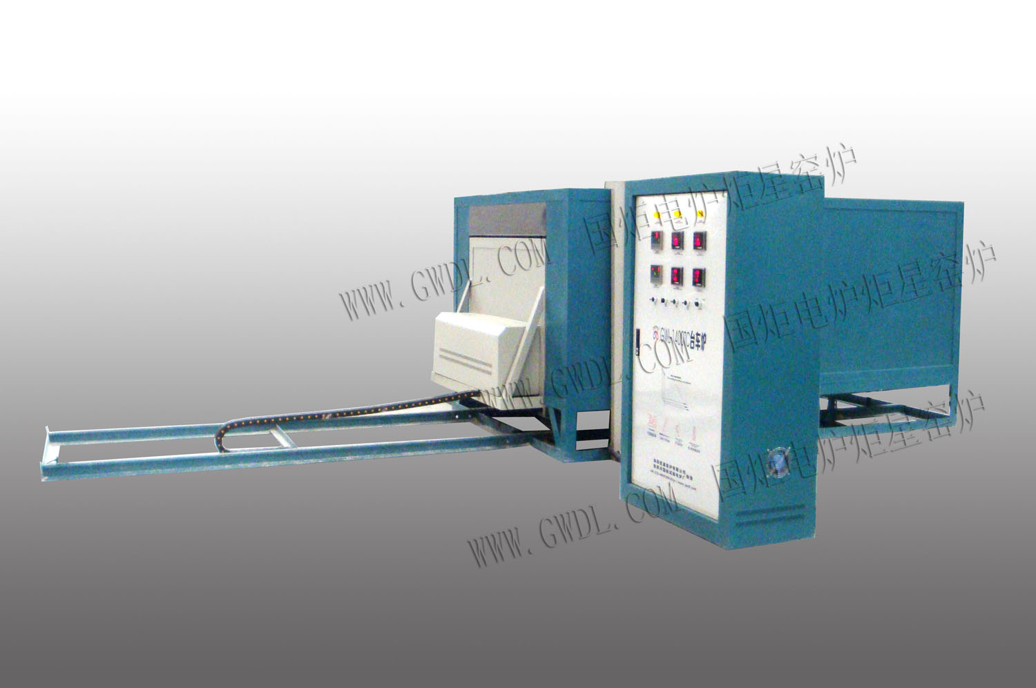 | 爐門開啟方式 | 爐門與底部為一體設計,開啟方式為電動,電機驅動減速機驅動裝料臺進出,并安裝有限位開關 |